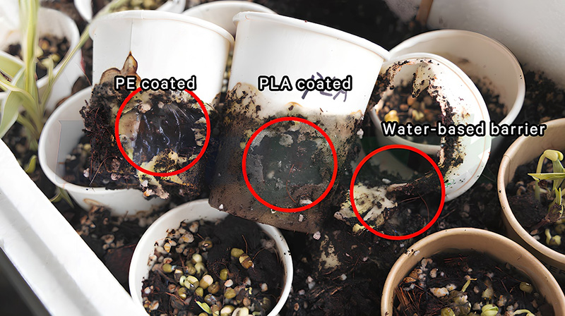 စမ်းသပ်နိဂုံးချုပ် - မြင့်မားသောအနိမ့်အထိအနိမ့်အထိနိမ့်ကျသောဒီဂရီသည် aqueouse seco cup> PLA> PE ။